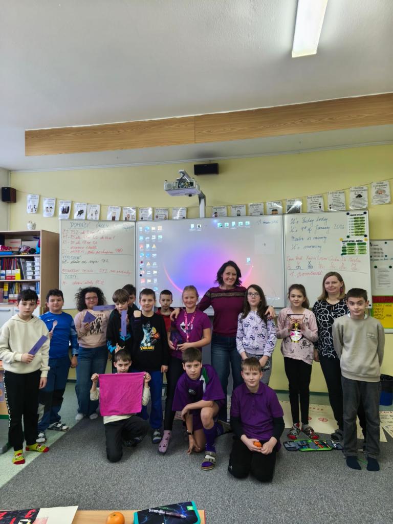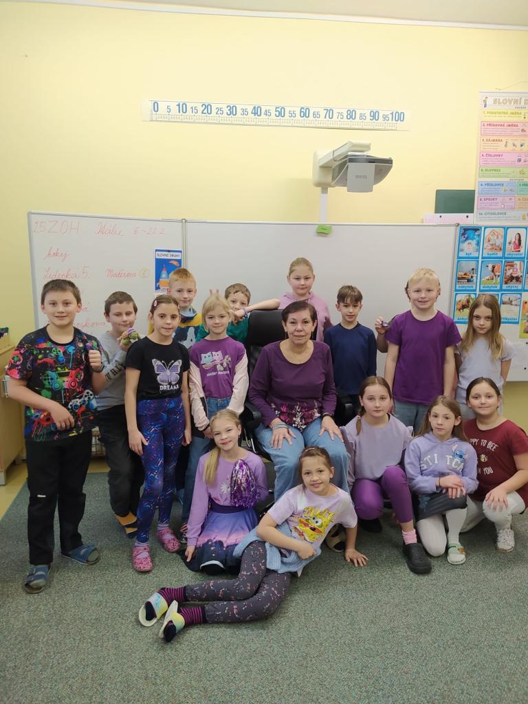 Žáci i učitelé přišli oblečeni do fialové barvy, která symbolizuje klid, empatii a podporu. V jednotlivých třídách probíhaly krátké aktivity zaměřené na spolupráci, vzájemné povzbuzení, poděkování spolužákům i učitelům a uvědomění si toho, co nám ve škole dělá radost.
